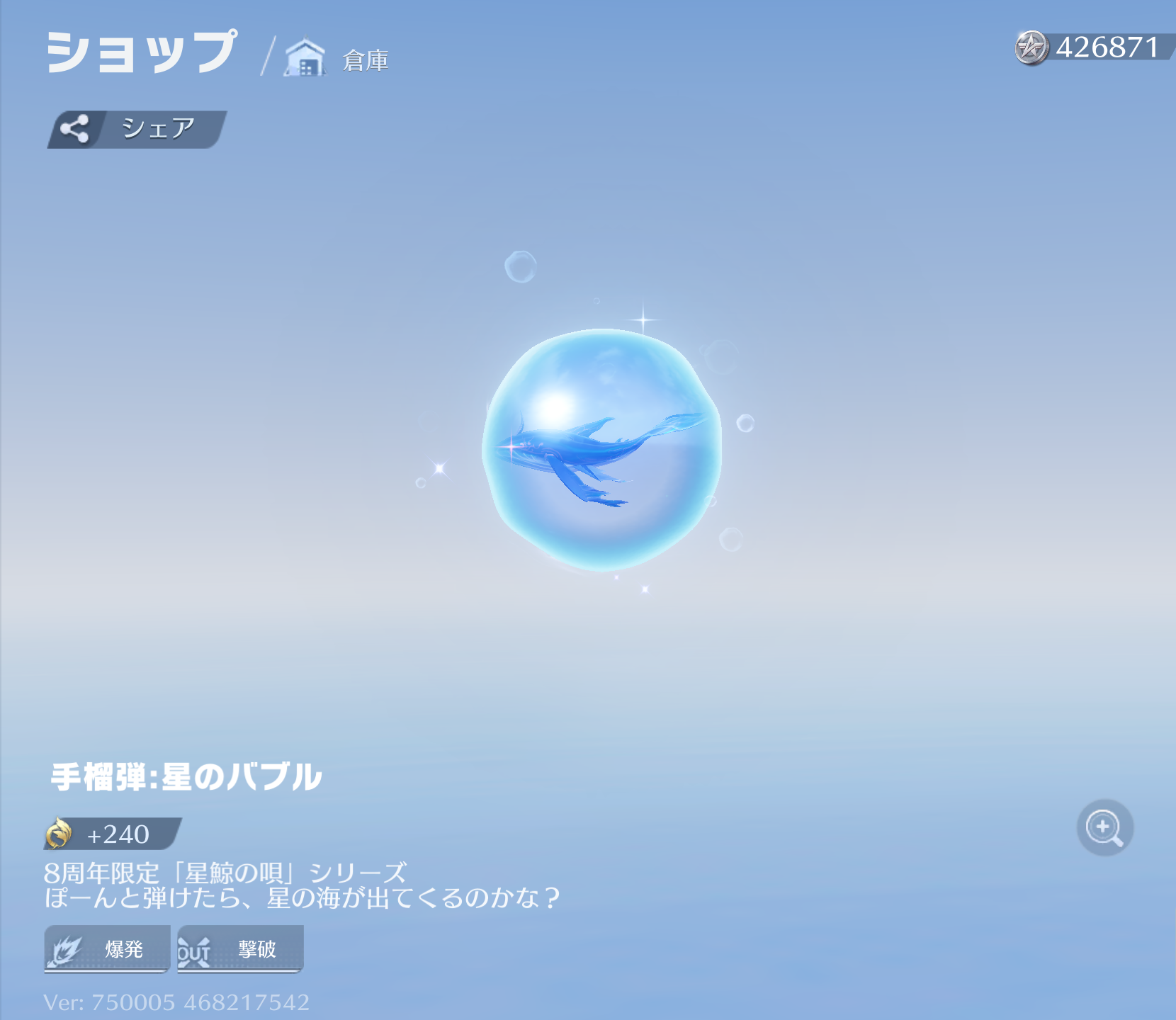 - 星鯨の唄ガチャから引く(確率0.030%)