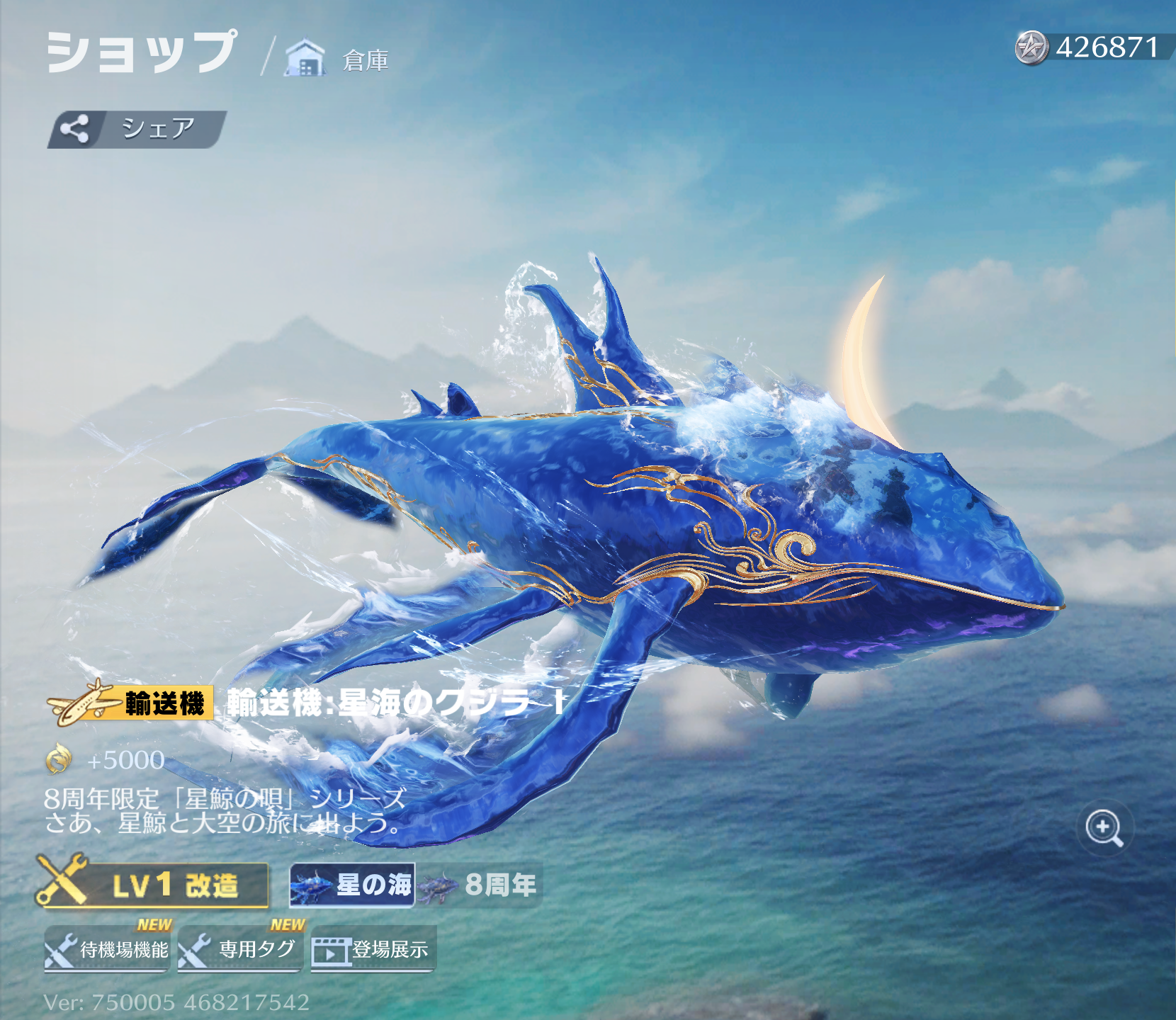 | 3 | 輸送機:星海のクジラ Ⅲ | 輸送機LvUPコイン×200枚 | 飛行中天空変化 |