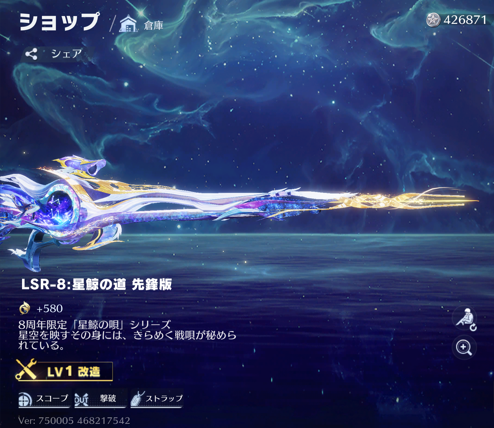 | 7 | LSR-8:星鯨の道 豪華版 Ⅲ | 撃破エフェクト | 銃器チップ・高級×3枚 |