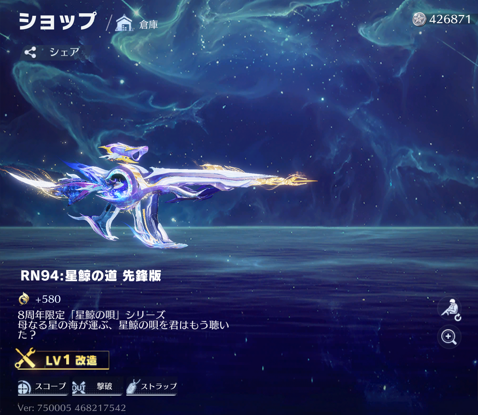 | 7 | RN94:星鯨の道 豪華版 Ⅲ | 撃破エフェクト | 銃器チップ・高級×3枚 |