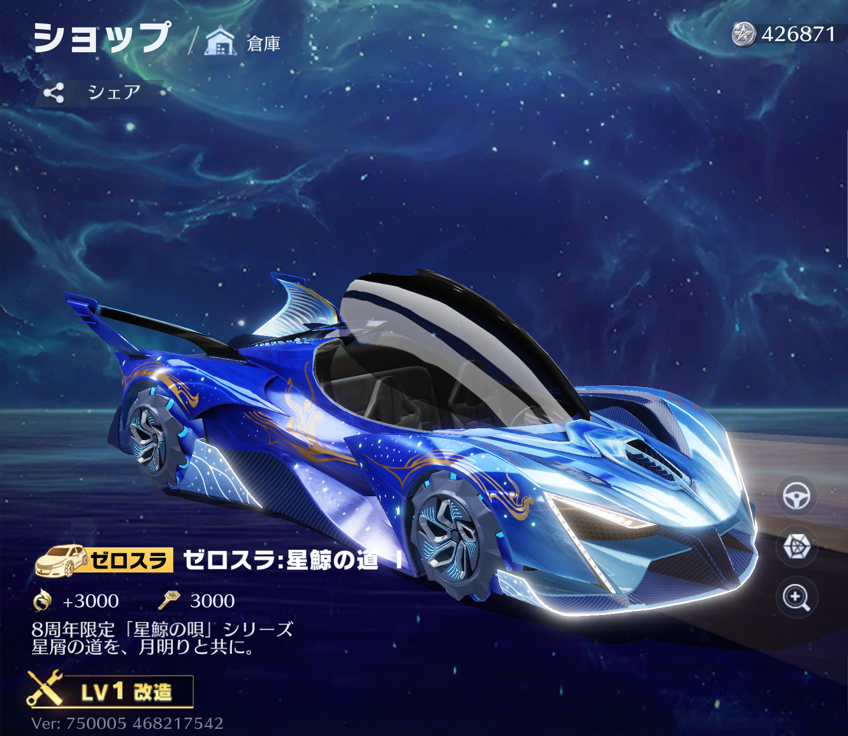 | 3 | ゼロスラ:星鯨の道 Ⅲ | 4000 | 車両LvUPチケット・高級×50枚 | 加速エフェクト |