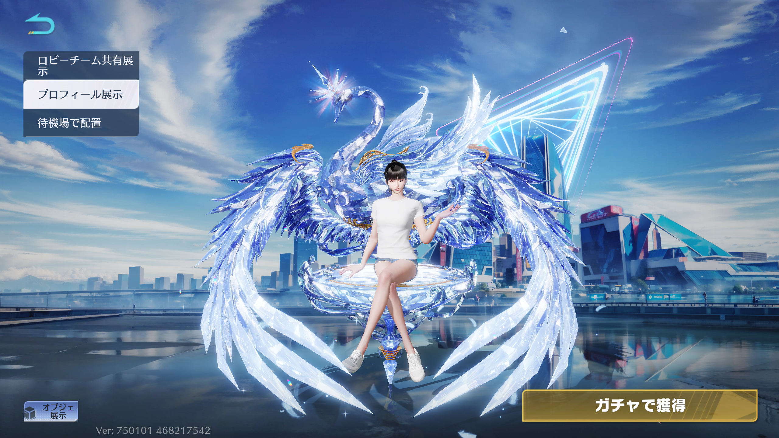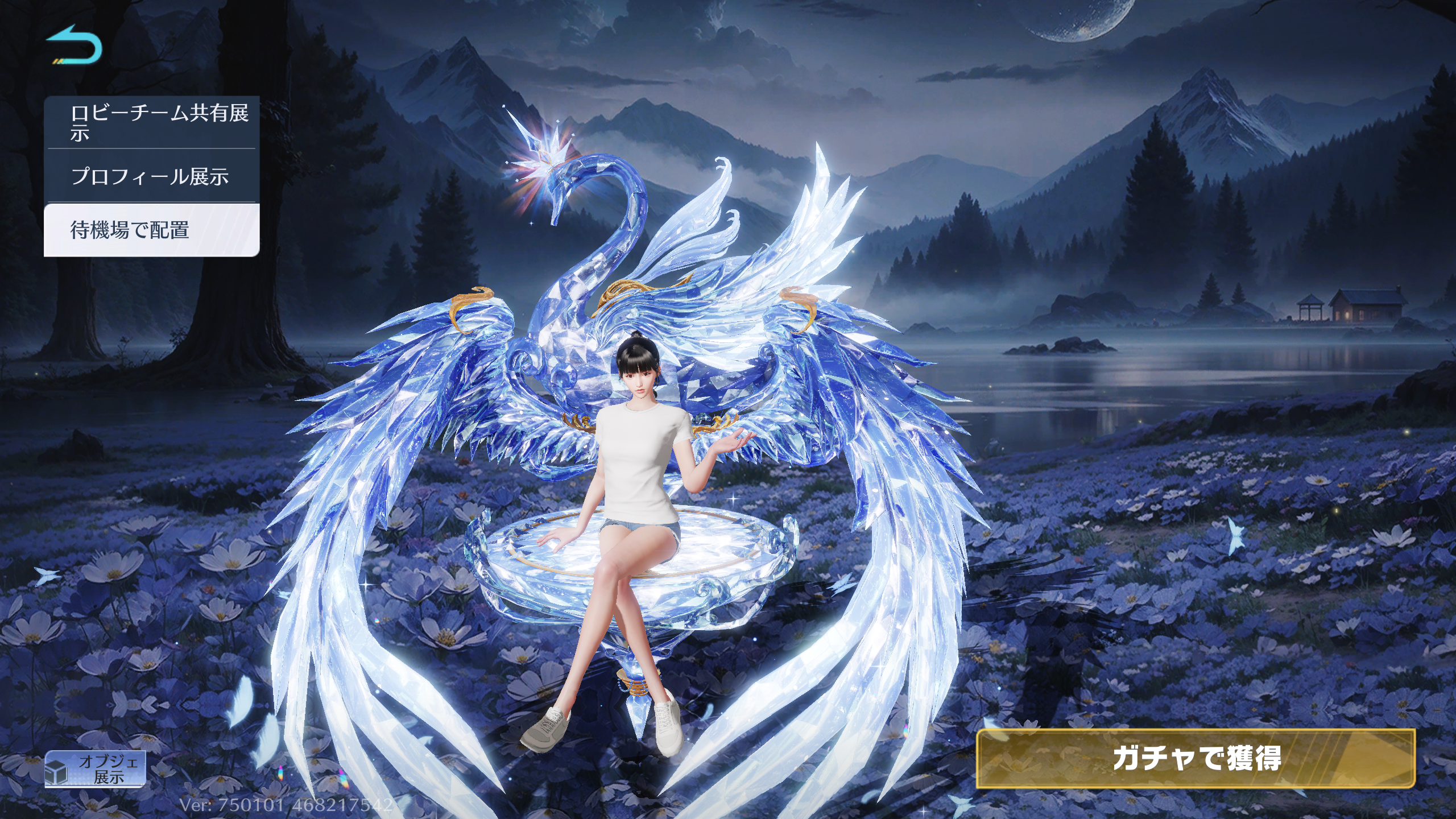 - 青水晶の白鳥ガチャから引く(確率0.250%)orテーマ交換証明450枚で交換(ガチャ画面交換ショップ)