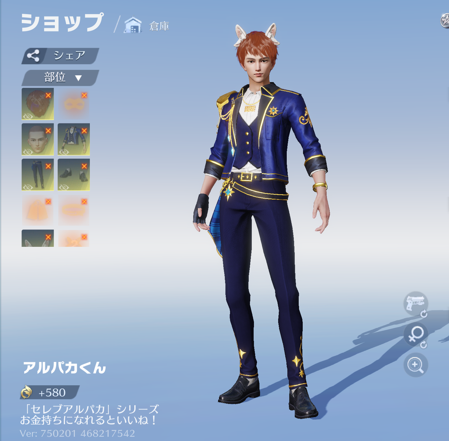 - セレブアルパカガチャから引く(確率0.400%)、またはテーマ交換証明450枚で交換(ガチャ画面交換ショップ)
