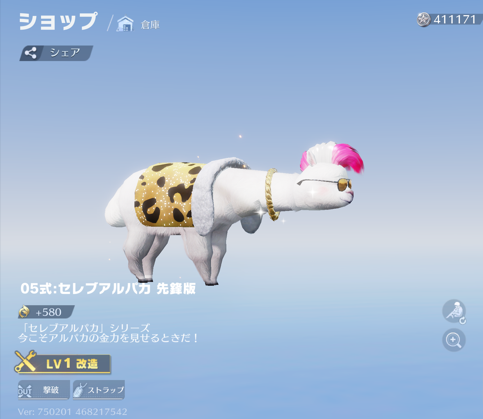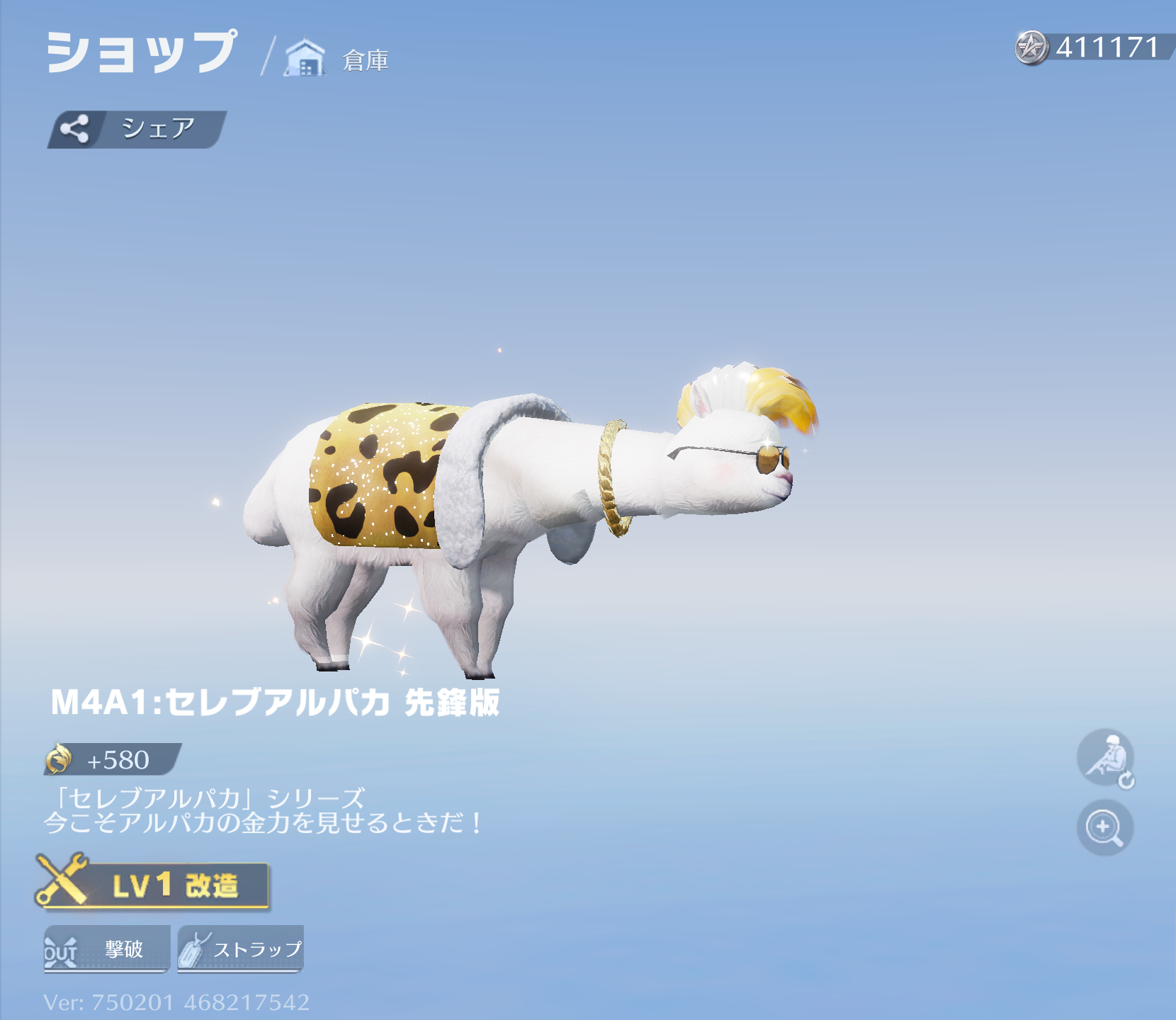 | 7 | 05式:セレブアルパカ 豪華版 Ⅲ | 撃破エフェクト | 銃器チップ・高級×3 |