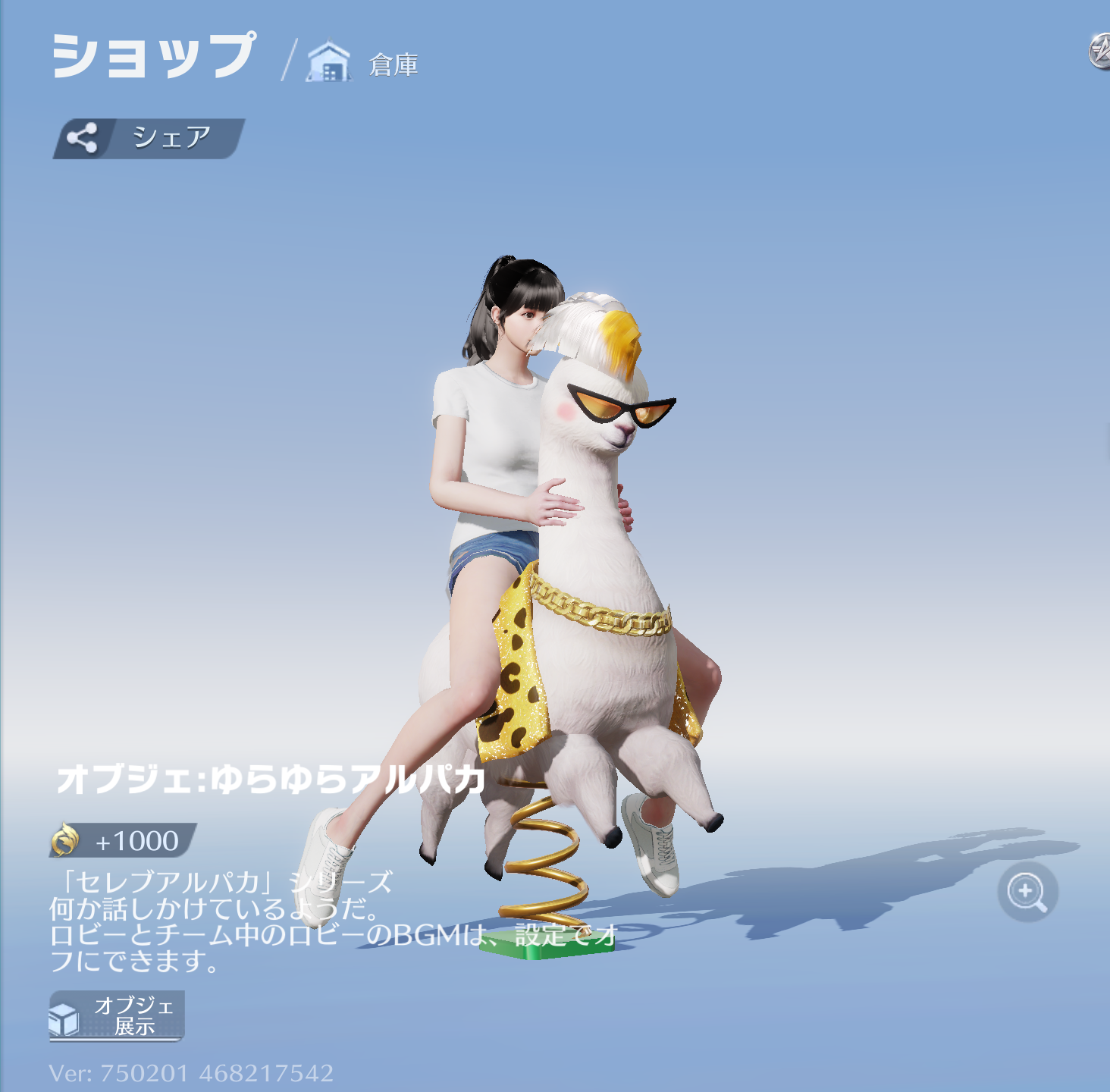 - セレブアルパカガチャから引く(確率0.050%)