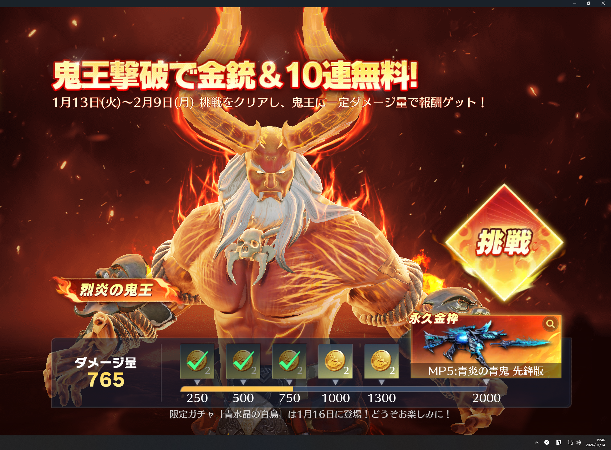 イベントでのダメージ量が2000になると獲得。