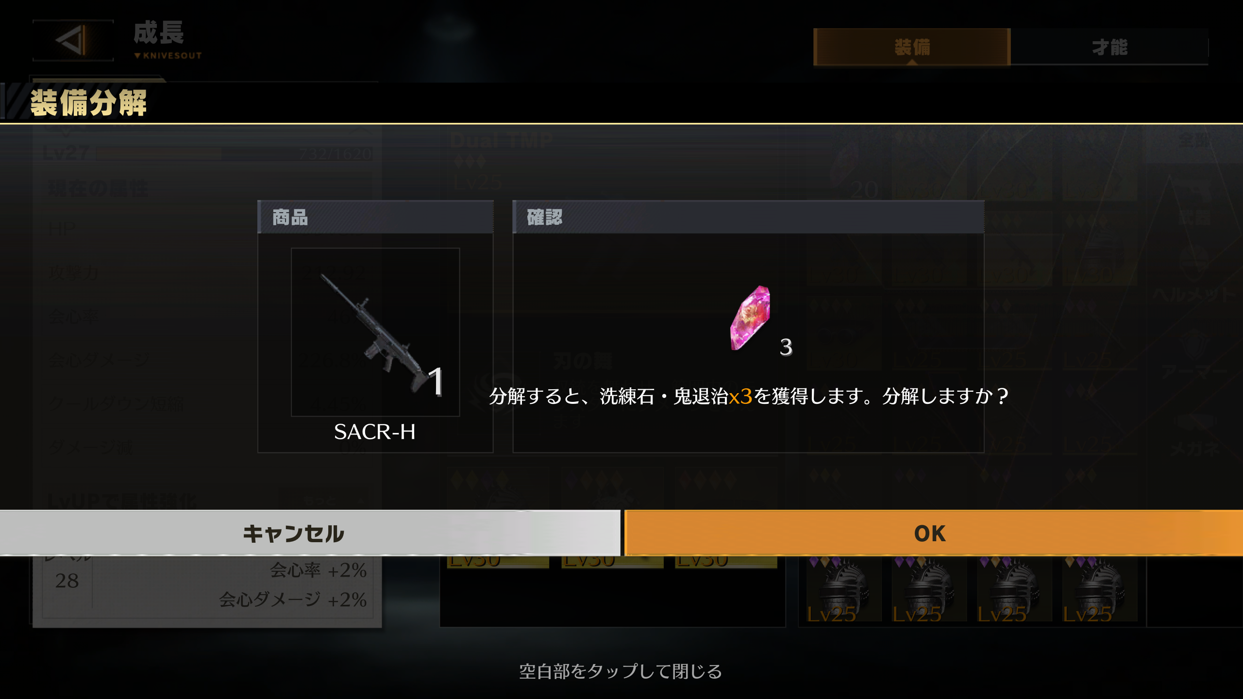 不要なレベル30のアイテムを分解することで精錬石を獲得することができます。