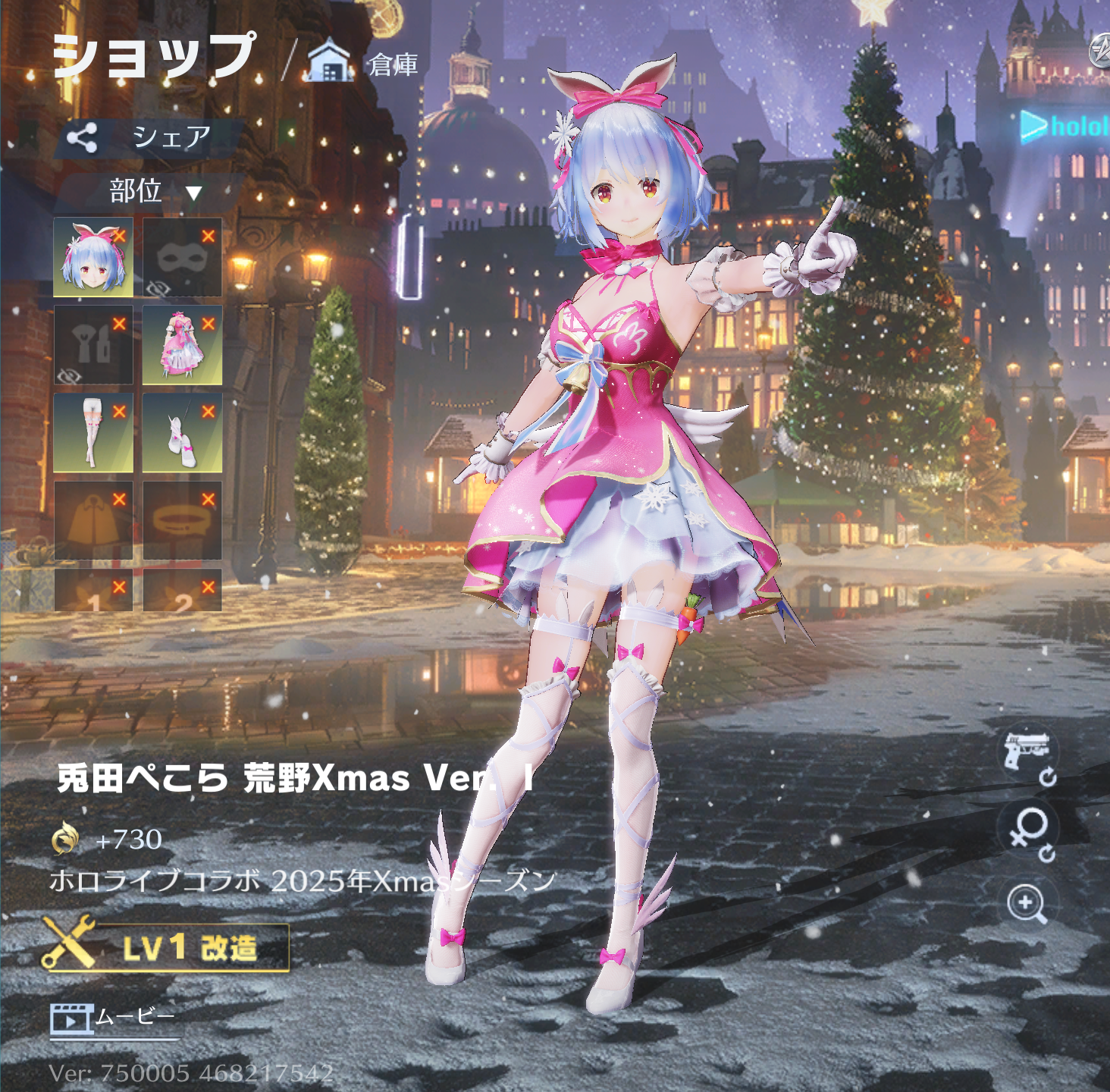 | 4 | 兎田ぺこら 荒野Xmas Ver. Ⅳ | スキン外観 | 衣装チケットLv6×20枚 |