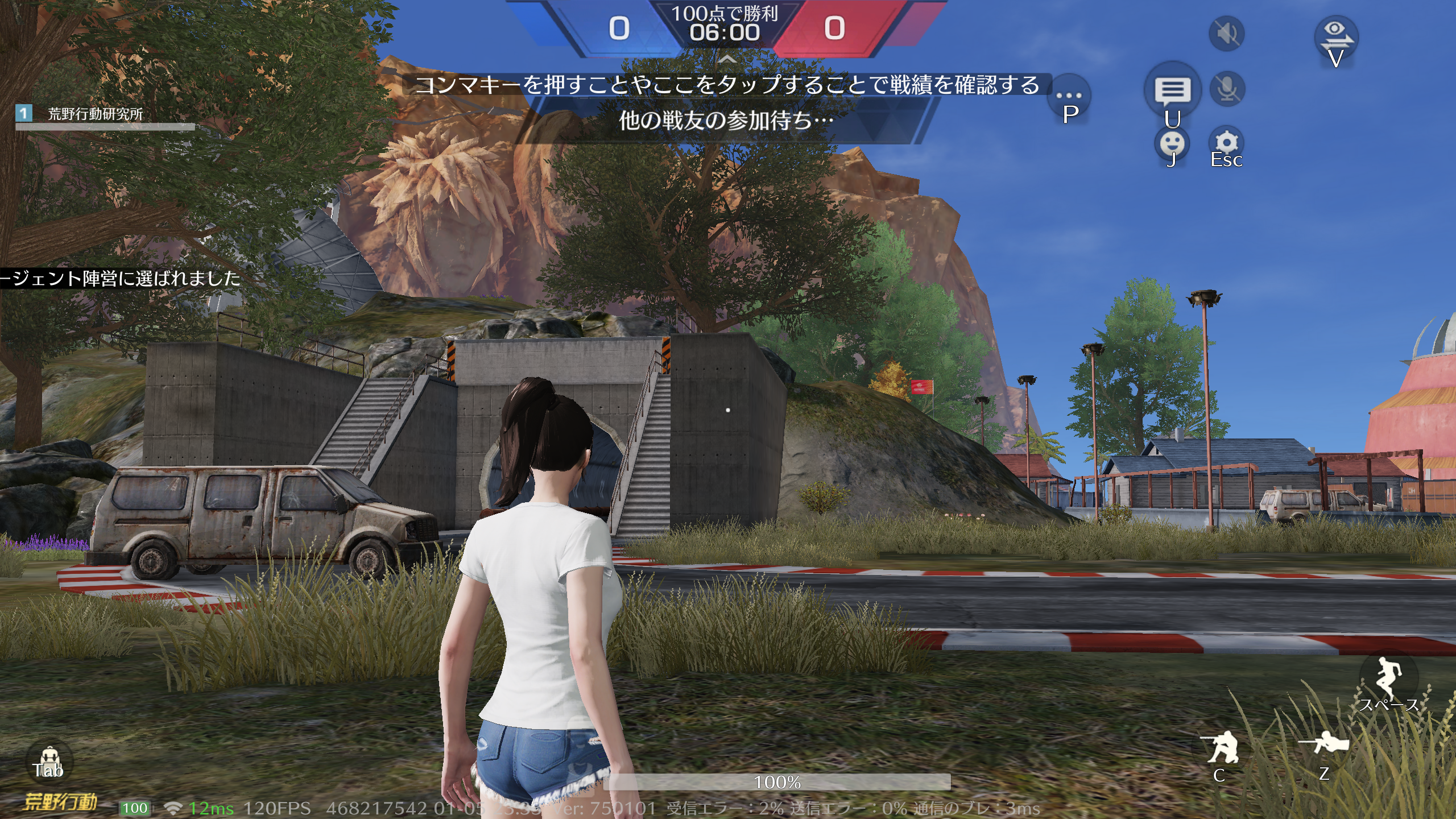 中央付近のコンテナ左側で、車を盾にしながら前進するのが安定します。もう一つの選択肢として、右側の山を使って距離を詰める動きも強いです。