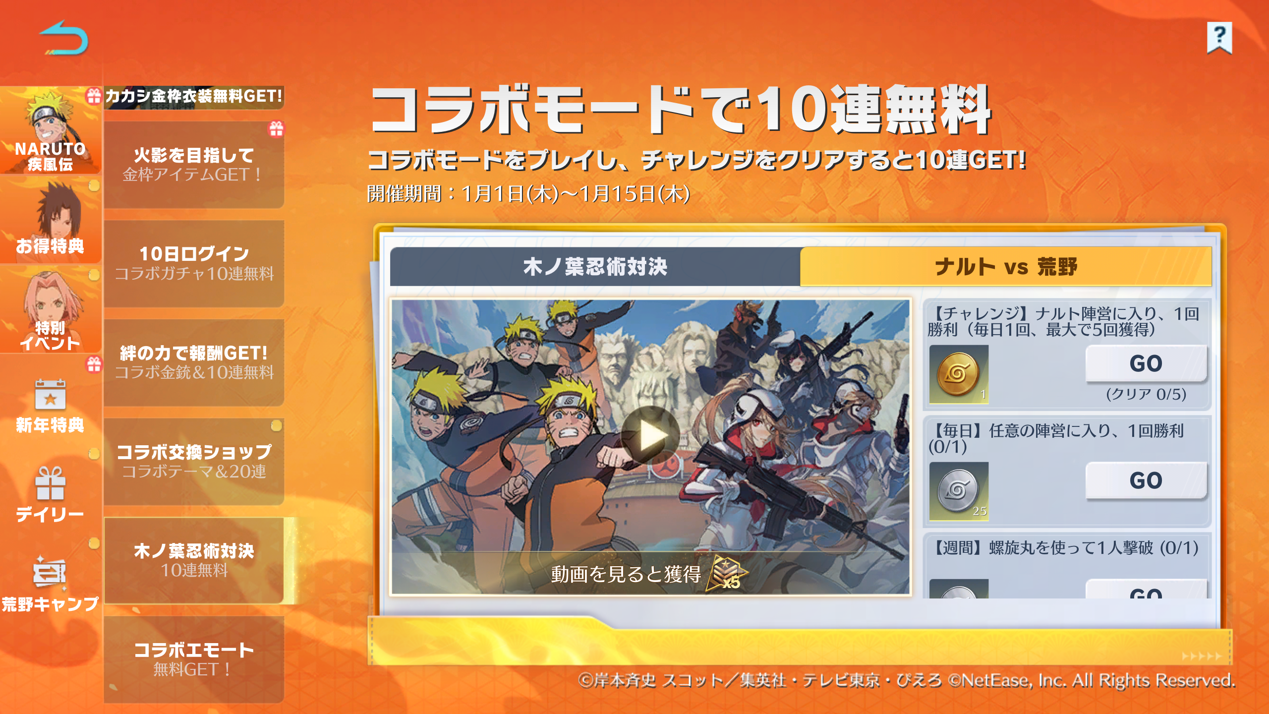 NARUTOコラボでは、イベントミッションに「ナルト vs 荒野」に関する項目があります。