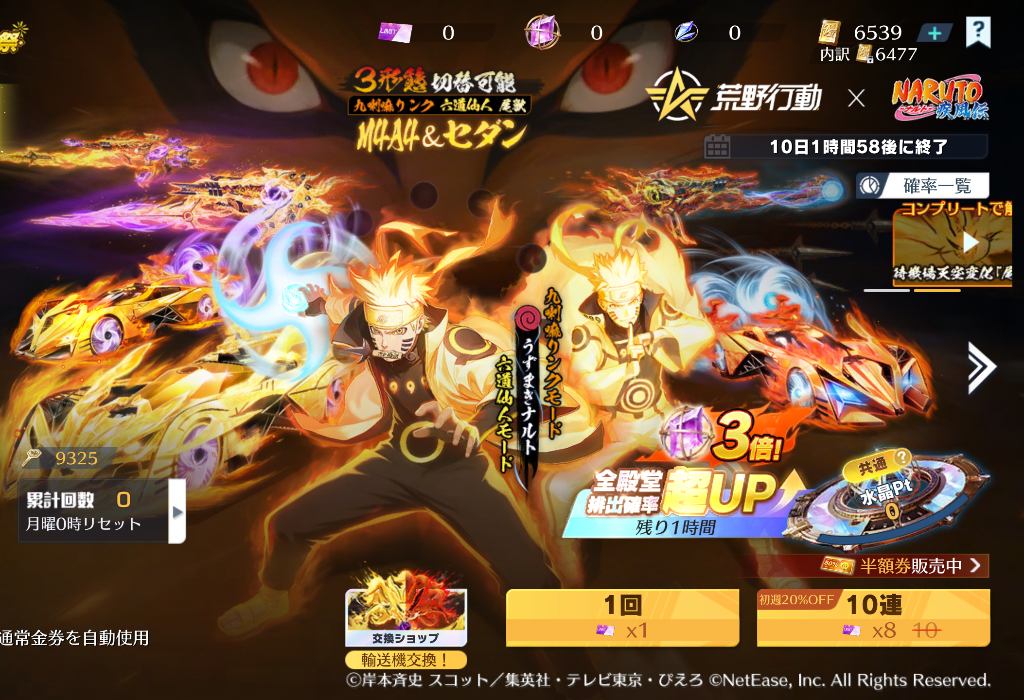 | 3モード覚醒後 | 尾獣モード | 9325 | 3モードチェンジ |