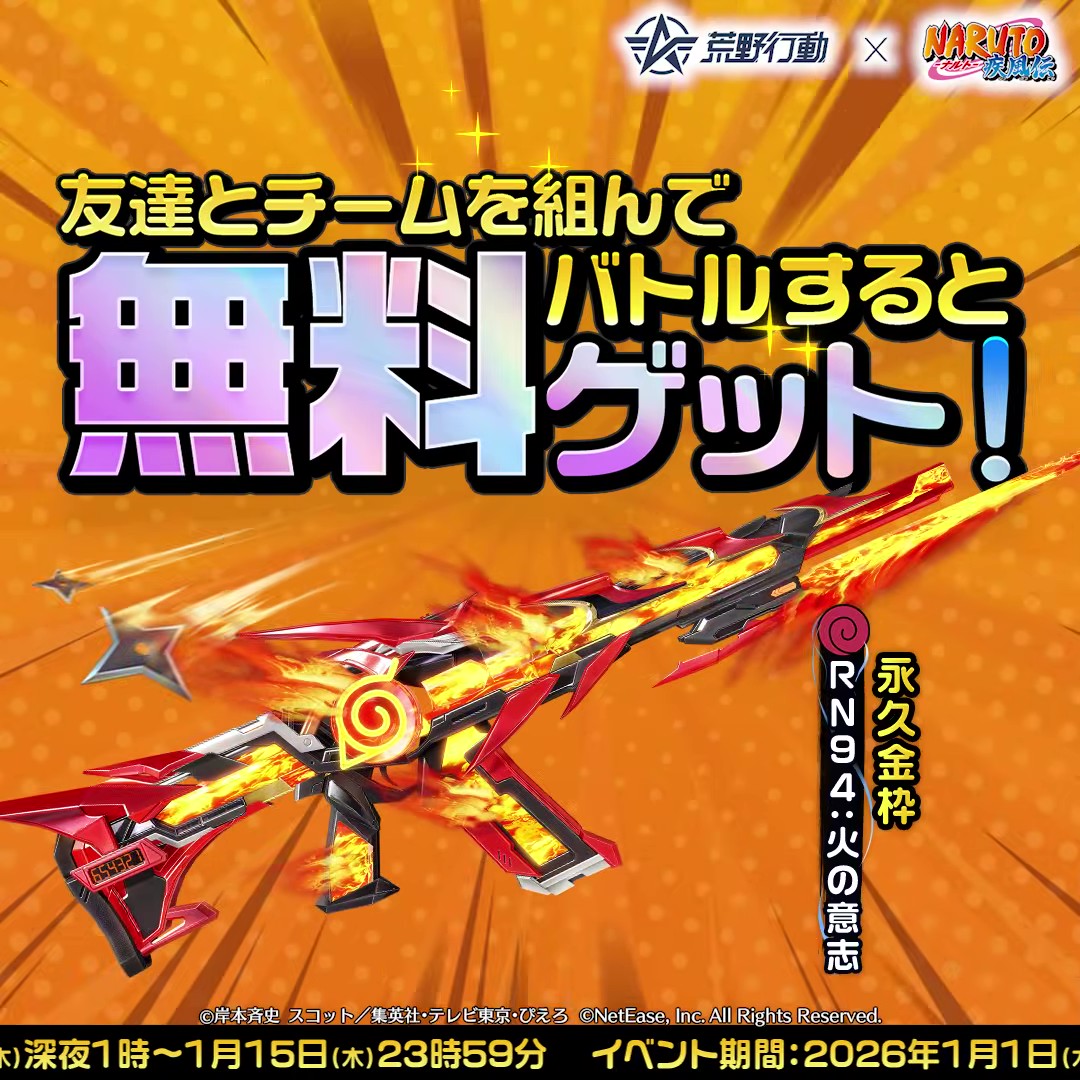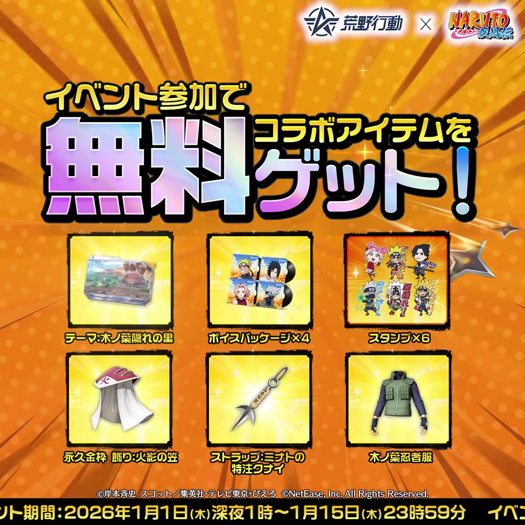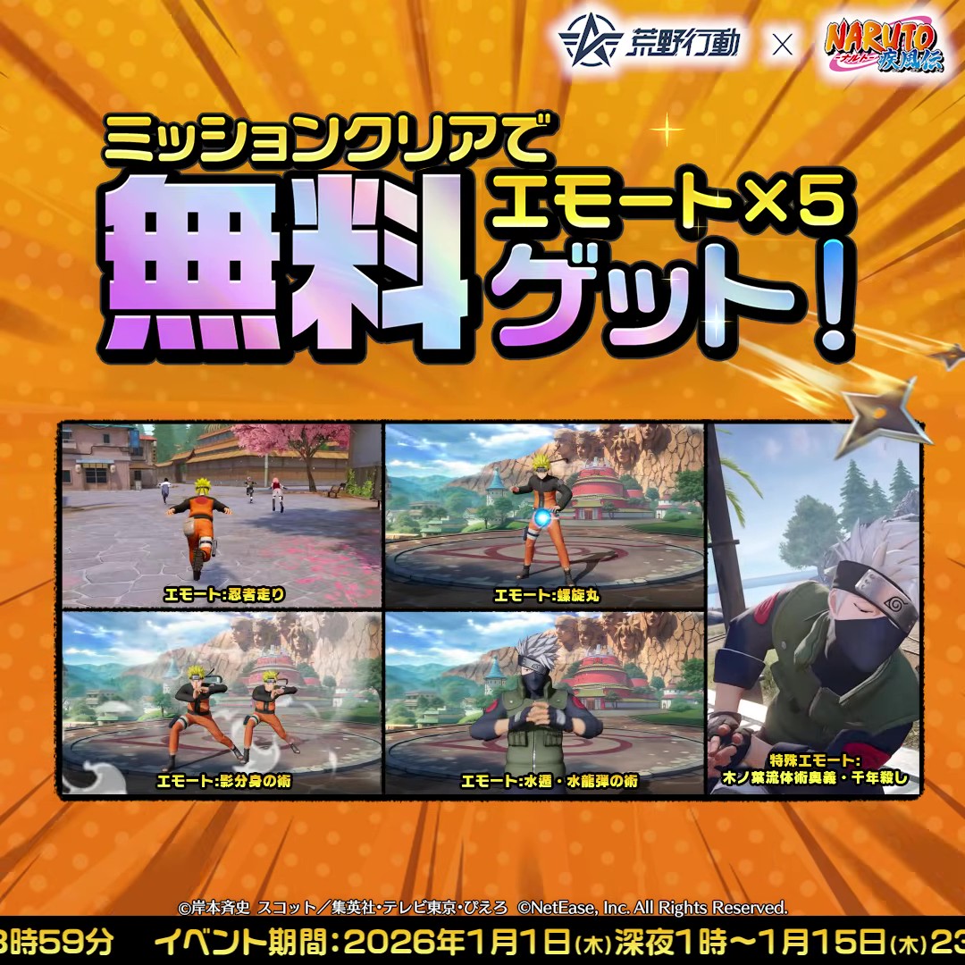 2026年の年明けから『荒野行動』×『NARUTO-ナルト- 疾風伝』コラボが開催決定!