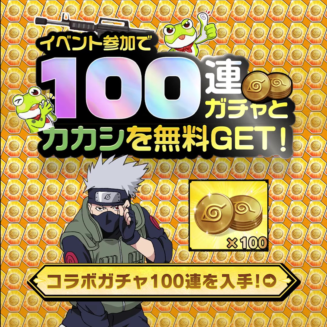 イベント参加:100連ガチャ+カカシ無料、さらにコラボアイテムも