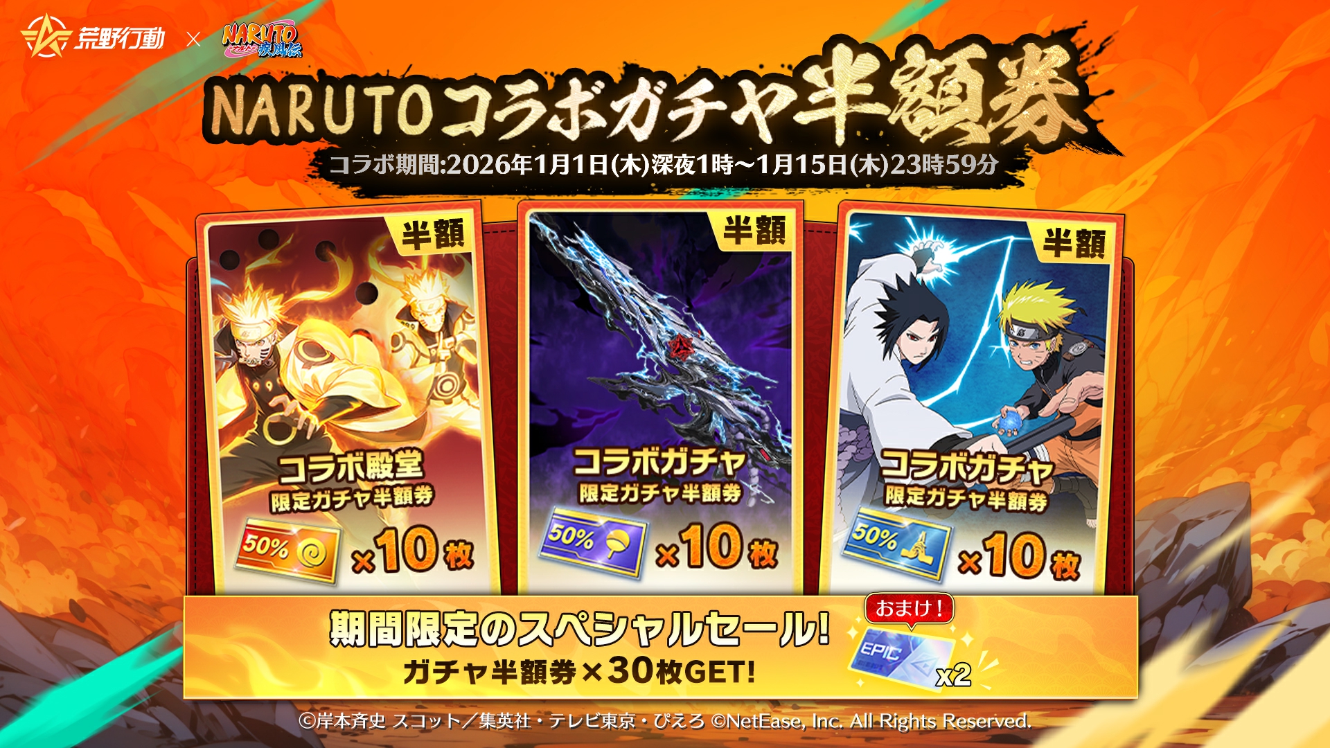 コラボ期間中、NARUTOコラボガチャ半額祭が開催。
