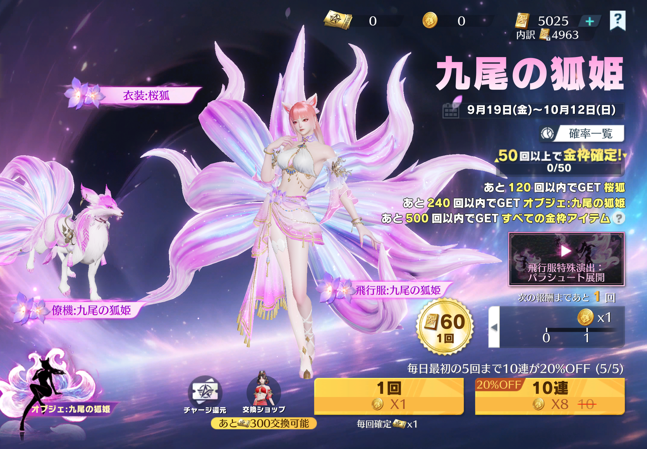 - 九尾の狐姫ガチャから引く(確率0.100%)
