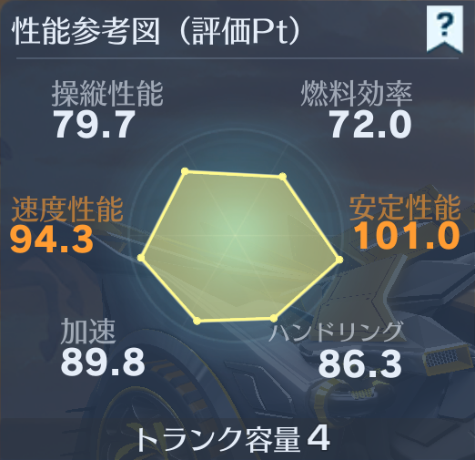 | 名前 | キーランク | 最高速度 | 最高馬力 | 最大回転角 | サスペンション強度 | 追加速度 | 進化必要なチケット | |