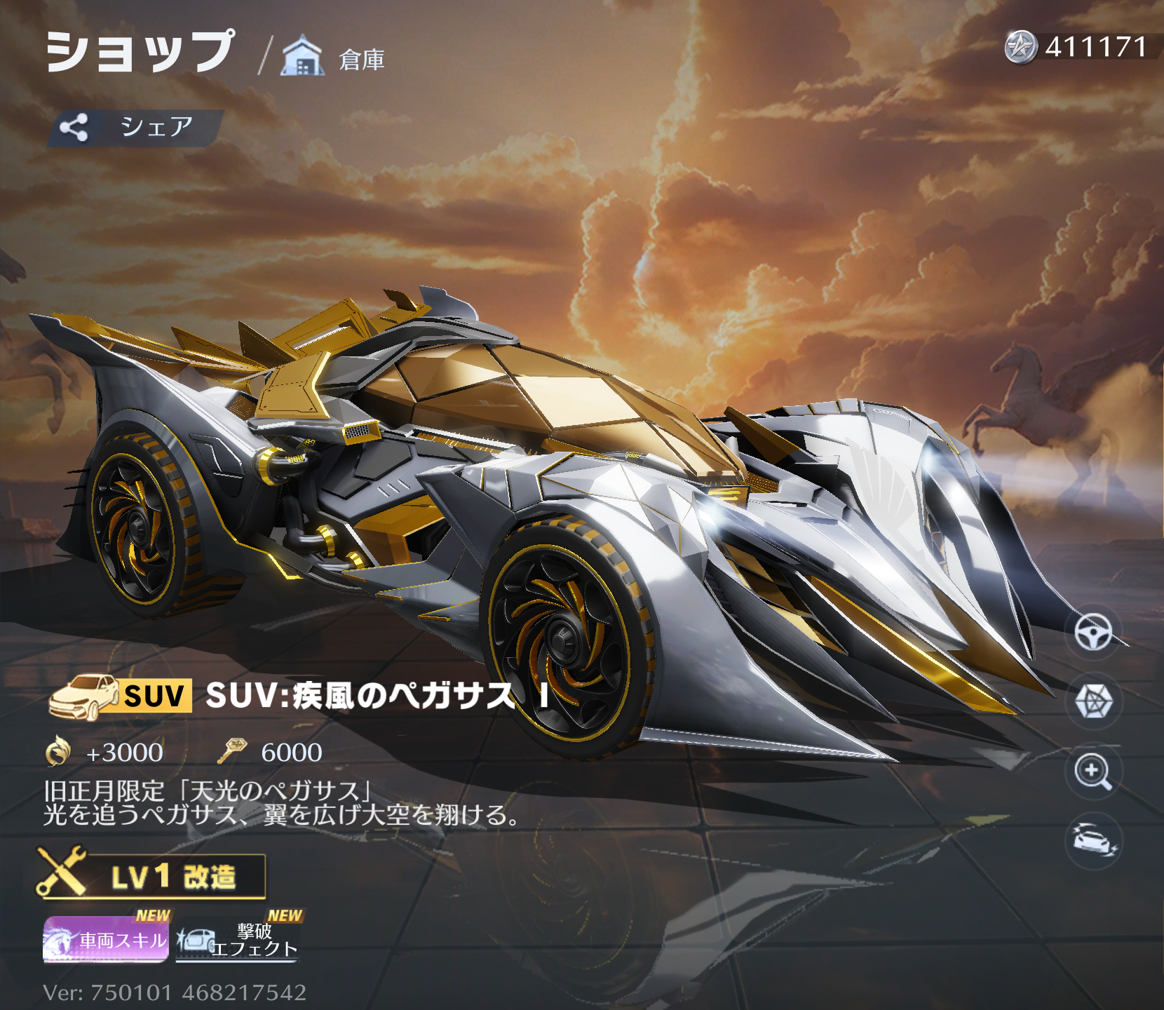 | 2 | SUV:疾風のペガサス Ⅱ | 7000 | 127.4 | 1290 | 59.16 | 28400 | 23% | 車両LvUPチケット・高級×50枚 |