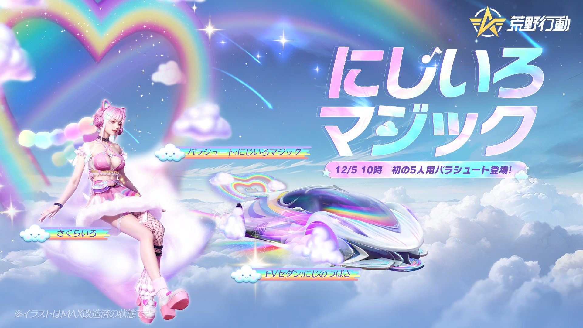 荒野行動ファンの皆さまに朗報です!虹と夢が舞うファンタジックな新シリーズ「にじいろマジック」が、12月5日(木)午前10時からゲーム内に登場します!その華やかな内容を詳しくご紹介します。